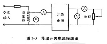 數(shù)控系統(tǒng)中對各電路板供電的系統(tǒng)電源大多數(shù)采用開關(guān)型穩(wěn)壓電源。這類電源種類繁多,故障率也較高,但大部分都是分立元件,用萬用表、示波器即可進(jìn)行檢查。維修開關(guān)電源時,最好在電源輸入指接一只1 : 1的隔離變壓器,以防觸電。另外,為了防止在修理過程中可能導(dǎo)致好的元件損壞,或引發(fā)新的故障,最好按圖3-3所示的接線方法,使輸入電壓從OV開始逐漸增大。在輸入和輸出回路中都有電流、電壓檢測,一旦發(fā)現(xiàn)有過壓或過流現(xiàn)象,即可關(guān)掉總電源,不致造成損失。
