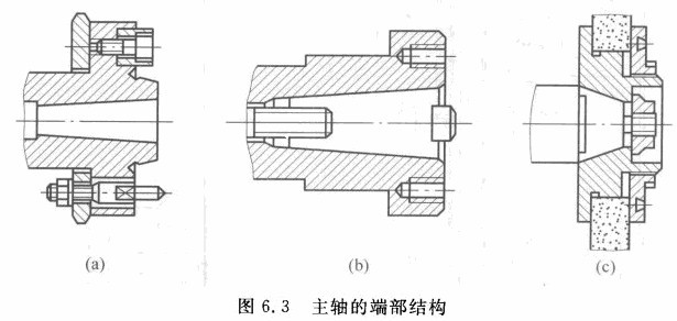 數(shù)控沖床主軸端部的結(jié)構(gòu)對工件或刀具的定位、安裝、拆卸以及夾緊的準確、牢固、方便和可靠性有很大影響。常見的幾種用于不同類型數(shù)控沖床主軸的端部結(jié)構(gòu)如圖6. 3所示,目前這些結(jié)構(gòu)都已標準化,具體可參閱《機床主軸端部與花盤互換性尺寸HGB/T5900.1-3--1997》。