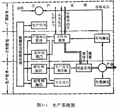 機(jī)械制造廠的主要生產(chǎn)車間可分為鑄造、鍛壓、熱處理、五金、機(jī)械加工、油漆、裝配等車間。各個字問又構(gòu)成各自的生產(chǎn)系統(tǒng),它又是全廣生產(chǎn)系統(tǒng)的一個子系統(tǒng)。圖1--2表示一個機(jī)械加工車間的生產(chǎn)系統(tǒng),在該系統(tǒng)中,物質(zhì)流中的原材料包攬毛坯、刀具、央具了量具及其它輔助物料,輸出成品是產(chǎn)品零件,信息則包指控制物質(zhì)流所需的工藝規(guī)程、計(jì)劃、調(diào)度等技術(shù)和生產(chǎn)管理工作等.