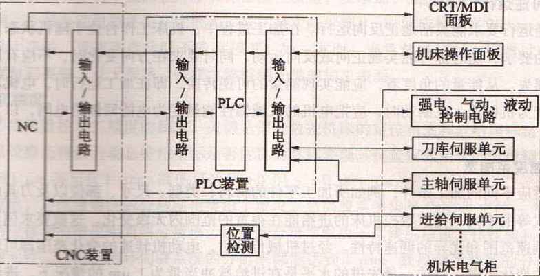 內(nèi)裝型PLC從屬于CNC裝置,PLC與NC間的信號傳送在CNC裝置內(nèi)部即可實(shí)現(xiàn)。