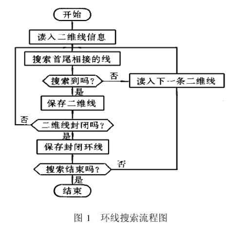 二維CAD圖形中的圖形繪制方法不一定能保證各圖索按次序首尾相接形成封閉的環(huán)線,因而在數(shù)控加工代碼生成時(shí)需要將圖形中的環(huán)線分離出來,作為加工對(duì)象的邊界因此CAD圖形處理的第一步要將離散的二維線整理成按先后次序首尾相接的環(huán)線,其搜索流程如圖1所示