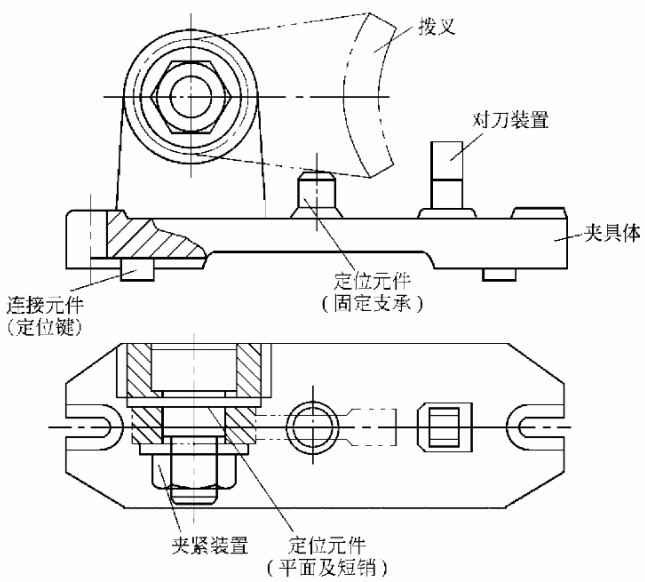 ③導向元件和對刀裝置 是用來保證刀具相對于夾具的位置,對于鉆頭、擴孔鉆、鉸刀、鏜刀等孔加工刀具用導向元件,對于銑刀、刨刀等用對刀裝置(圖3-1)。