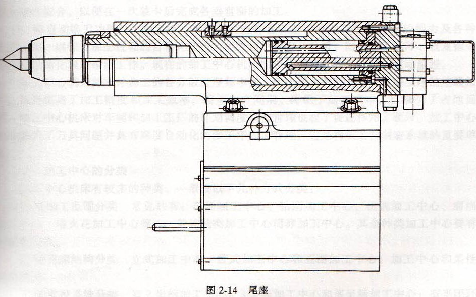床身上移動(dòng)和固定。尾座套筒前端安裝頂針,套筒可以自動(dòng)伸出和縮回,現(xiàn)頂尖對(duì)工件的支撐作用。